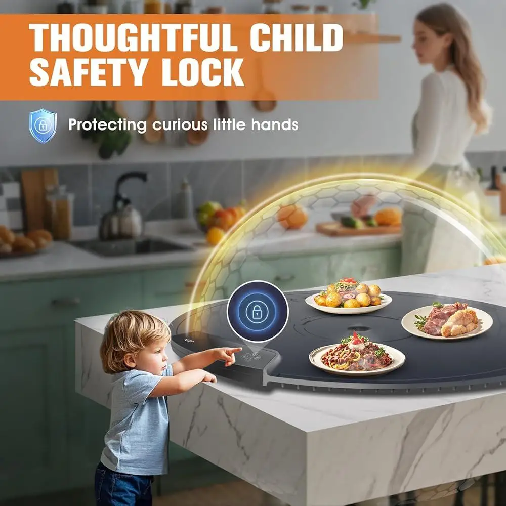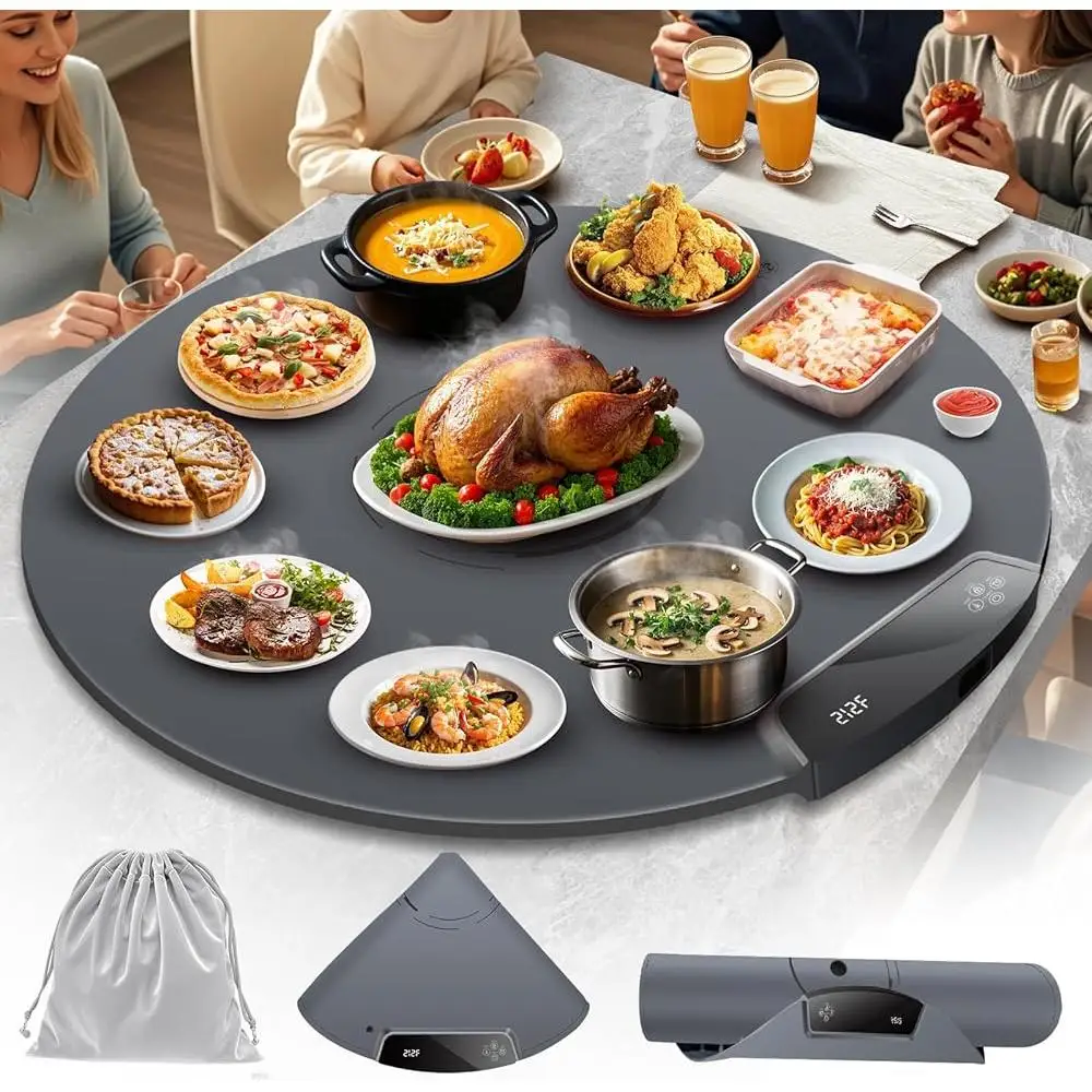 Keep your dishes at the perfect temperature with this extra-large 25.6" electric warming mat, engineered for serious entertaining. Featuring a powerful 300W heating element with advanced directional technology, it reaches optimal warmth in just 6 seconds and maintains even heat distribution across the entire surface. Choose from 11 precise temperature settings (104°F to 248°F) and 6 timer options to keep food hot for up to 12 hours. The premium silicone construction with dual NTC temperature control offers exceptional durability and heat resistance, while the child safety lock provides peace of mind. Lightweight and rollable for convenient storage, this versatile mat works with any cookware material and extends beyond food service—ideal for defrosting, warming beauty products, or proofing dough. Professional-grade performance for buffets, gatherings, and everyday convenience.